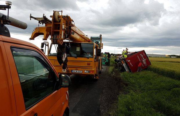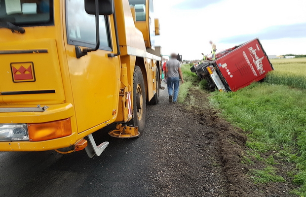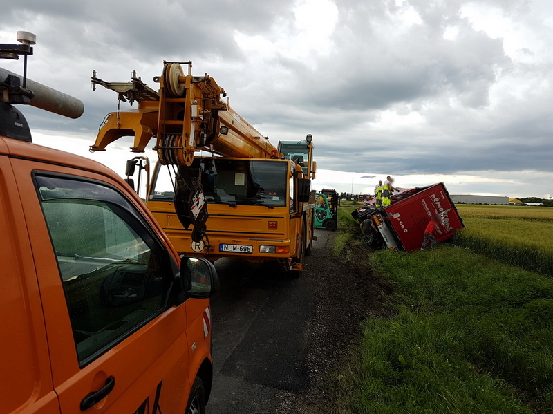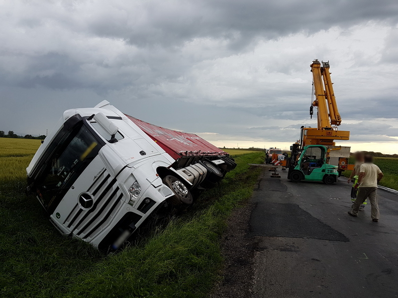 Árokba borult egy magyar kamion Vép közelében