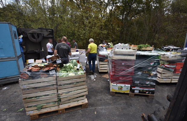 Felborult kamion kerekekre állítása Káld közelében, a 84-es főúton