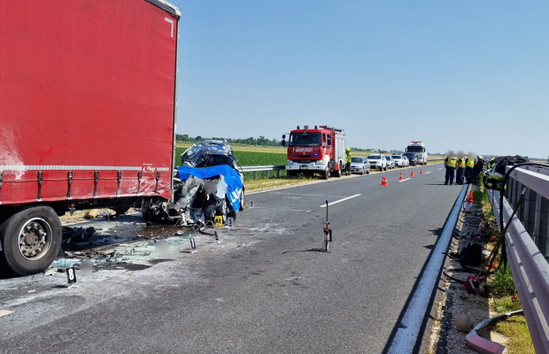 Három halott az M86-oson - defektes kamion pótkocsijába hajtott egy lengyel rendszámú személyautó