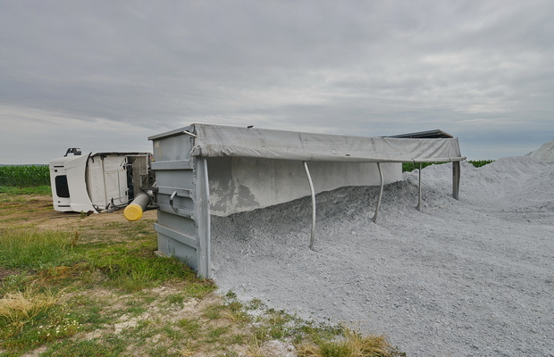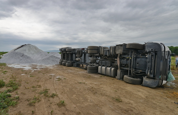 Scania teherszállító borult fel egy mezőgazdasági területen, Bucsu közelében