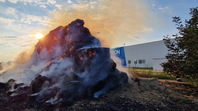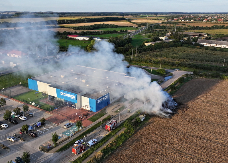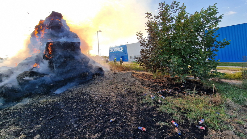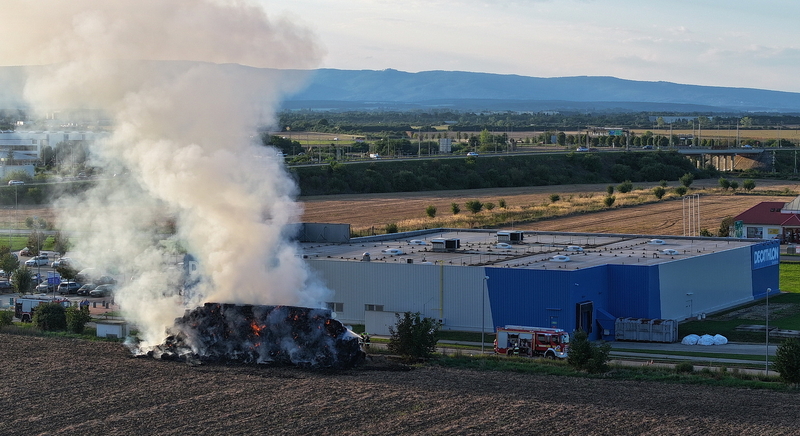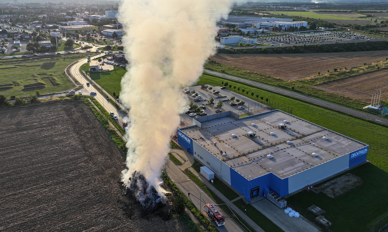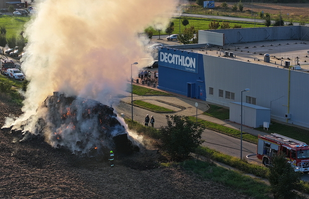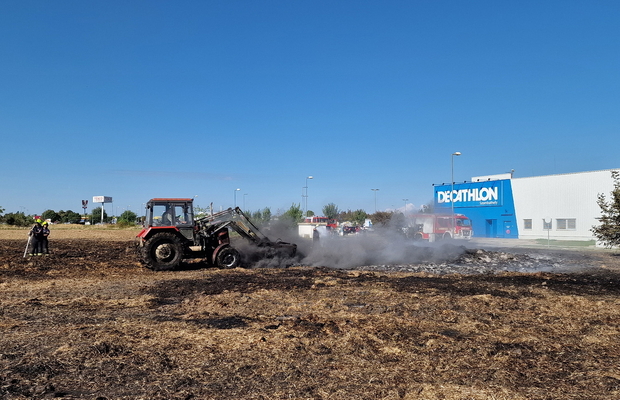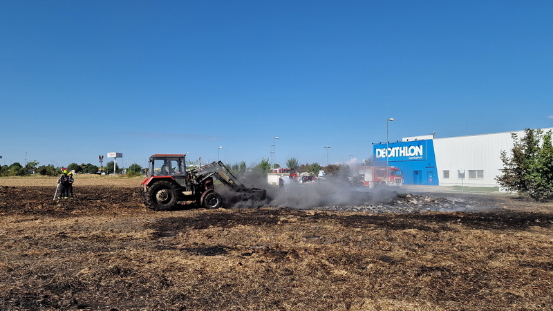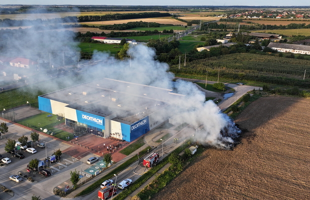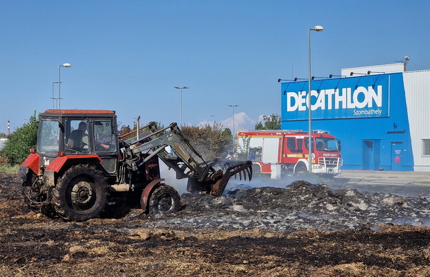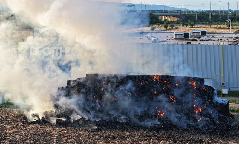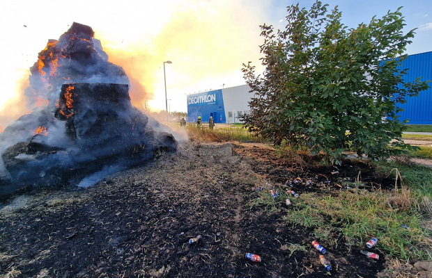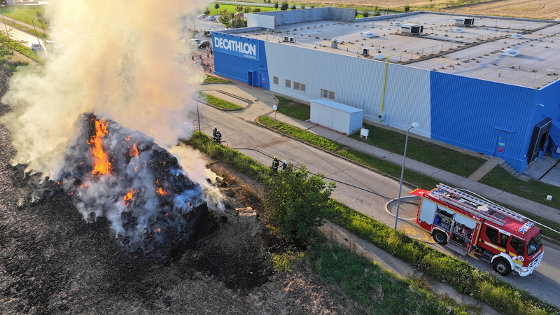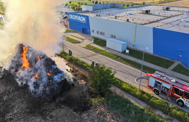 Százötven szalmabála lángolt a szombathelyi Decathlon áruház mellett