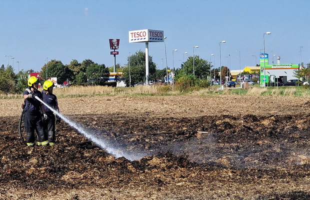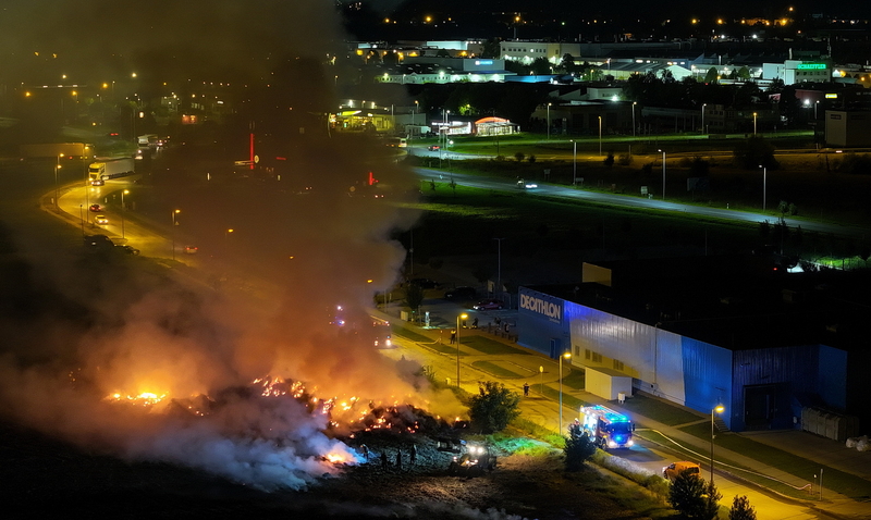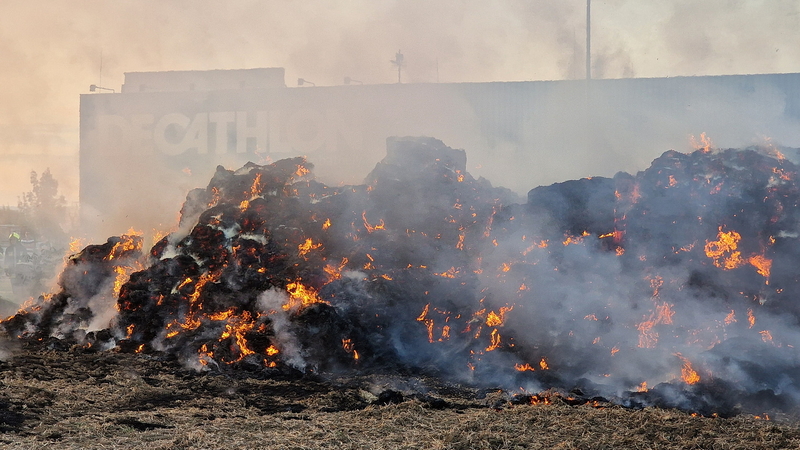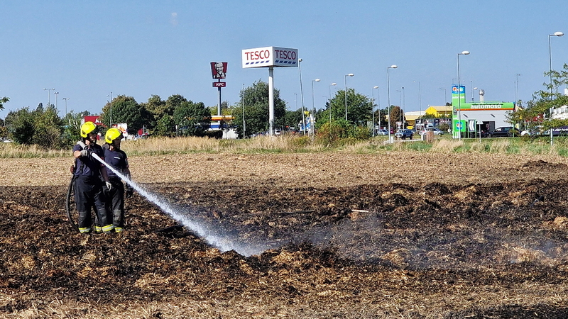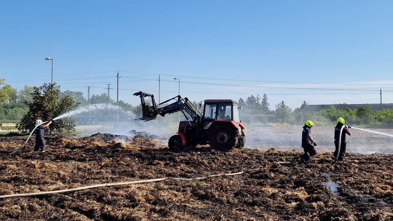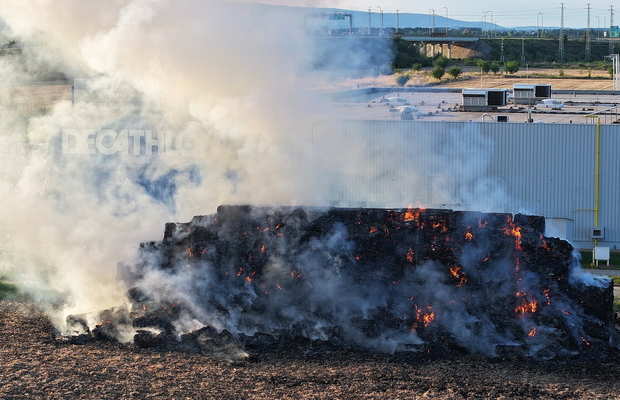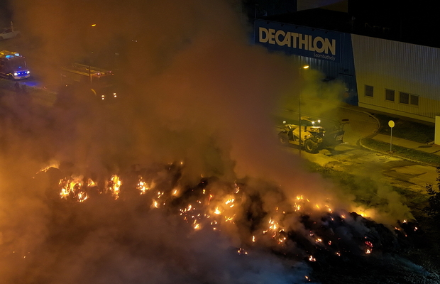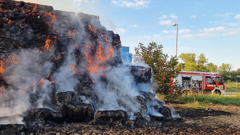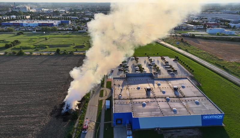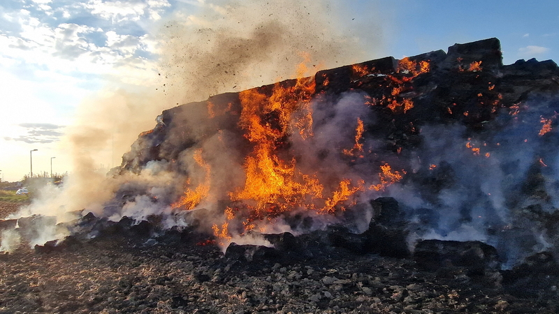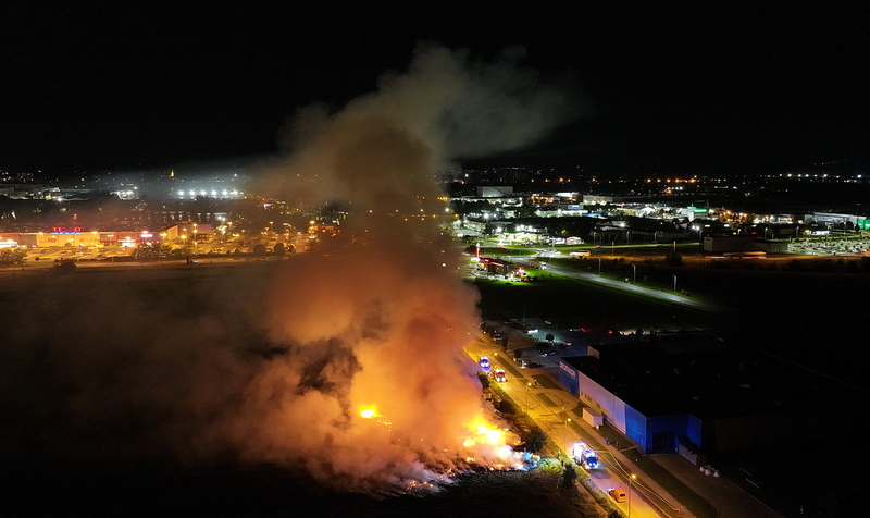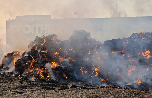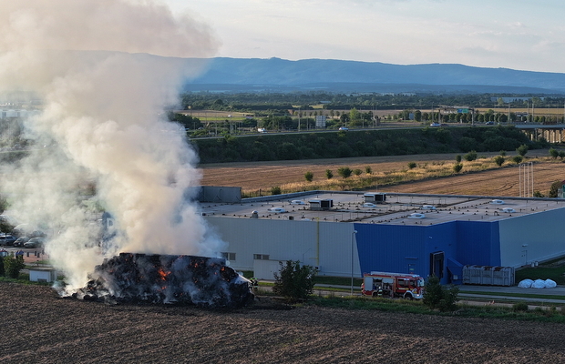 Százötven szalmabála lángolt a szombathelyi Decathlon áruház mellett