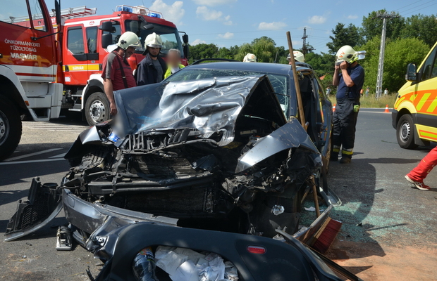 A 8-as főúton állt egy Mercedes autószállító tréler, ami balra, a 87-es főútra akart bekanyarodni. A szemből érkező Skoda személyautó sofőrje eddig ismeretlen okból nekihajtott az autószállító elejének.
