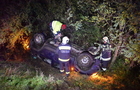A főútvonalon haladó jármű belecsapódott a Dacia hátuljába, ami ettől a menetirány szerinti jobb oldalon letért az útról és megpördülve, felborulva bokrok közé sodródott.