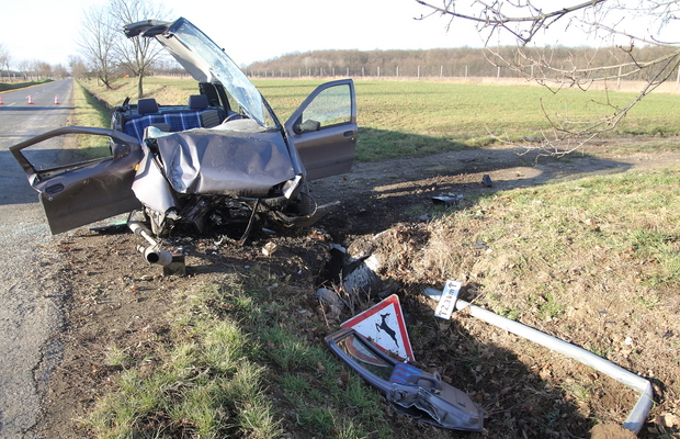 Egy enyhe kanyar után hajtott le az útról egy Fiat Punto vasárnap délelőtt Balogunyom és Ják között, majd kidöntött egy jelzőtáblát, végül beton áteresznek ütközött. A helyszínre érkező tűzoltóknak egy embert kellett kiszabadítani a roncsokból, a másik sérült ki tudott szállni.