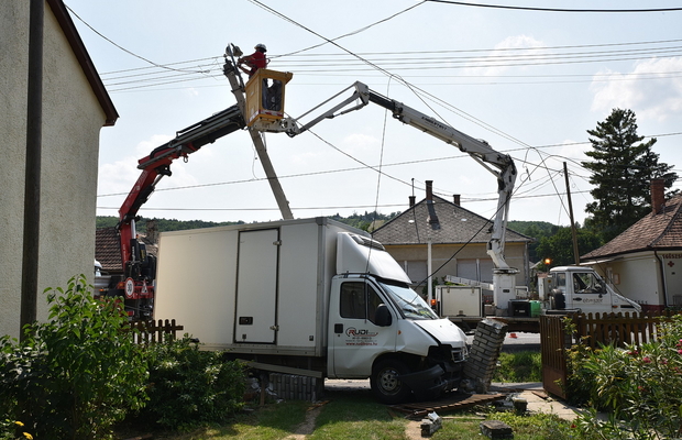 A teherautó vezetője Egervár belterületén letért az útról, majd az óvoda előtt betonoszlopnak hajtott, végül egy kerítést lebontva állt meg. Senki nem sérült meg. Videó.