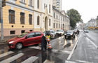 Nem volt egyszerű dolguk a forgalomirányító rendőröknek. Sok autós ugyanis a jelzőlámpákat nézte, nem pedig a rendőri karjelzést, vagy egyszerűen leblokkolt, mert nem kanyarodhatott arra, amerre szeretett volna. Láttunk ügyeskedőket is. Mint az a következő képünkön is jól látszik, a kisáruszállító az egyenesen elengedett busz takarásában próbált meg átsurranni, kikerülve a bójákat és három rendőrautót.