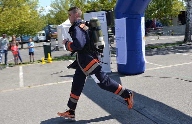 Idén először indítottak a verseny szervezői olyan kategóriát, amelyben tűzoltó védőruhában és palackkal nevezhettek a verseny tűzoltó indulói. A 21 kilométeres félmaratont még könnyített felszerelésben sem könnyű teljesíteni, de a verőfényes napsütés mellett a négy indulónak a ruha lezártságával és a palack nehézségével is meg kellett küzdenie a táv teljesítése során.