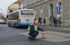 A Wesselényi utcában a Pelikán park felé haladt egy Ford, ami nem adott elsőbbséget a neki jobbról, a védett úton érkező helyi járatos autóbusznak. Az ütközés után a Ford egy üzlet falának csúszott. A busz utasokat szállított, de senki nem sérült meg. A Ford utasát a mentők a helyszínen vizsgálják. A forgalmat rendőrök irányítják.