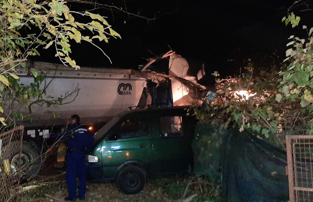 Budapest irányába tartott az 5. számú főúton az a járműszerelvény, aminek vezetője eddig ismeretlen okból 2019. október 29-én a kora reggeli órákban letért az útról és egy családi ház oldalába csapódott. Az Alsóbabád úton bekövetkezett balesetben sem a járműszerelvény vezetője, sem a házban tartózkodó házaspár nem sérült