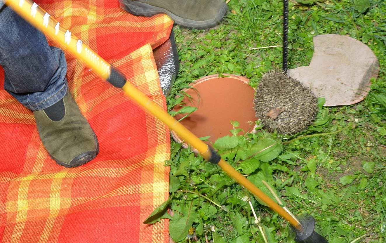 Nem az első sün esett bele a Pelikán parkban az 1,15 méter mély csőbe. Bogáti András éjszaka mentett állatot, közben rendőrt hívtak rá.