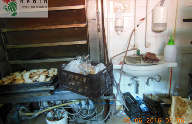 A pékség helyiségei takarítatlanok, piszkosak voltak, a festékréteg pergett le a falról, a kemencéről hiányzott a csempe. Az üzemi részen a higiénikus kézmosáshoz szükséges kézmosószer, papírtörölköző hiányzott, a kelesztőben lévő csatornaszem nem volt lefedve, bűzös szag áradt belőle. Az öltöző szintén rendetlen, takarítatlan volt, csikkekkel, használt ruhákkal teli. A pékségben dolgozó négy alkalmazott közül csak egy rendelkezett érvényes egészségügyi kiskönyvvel.