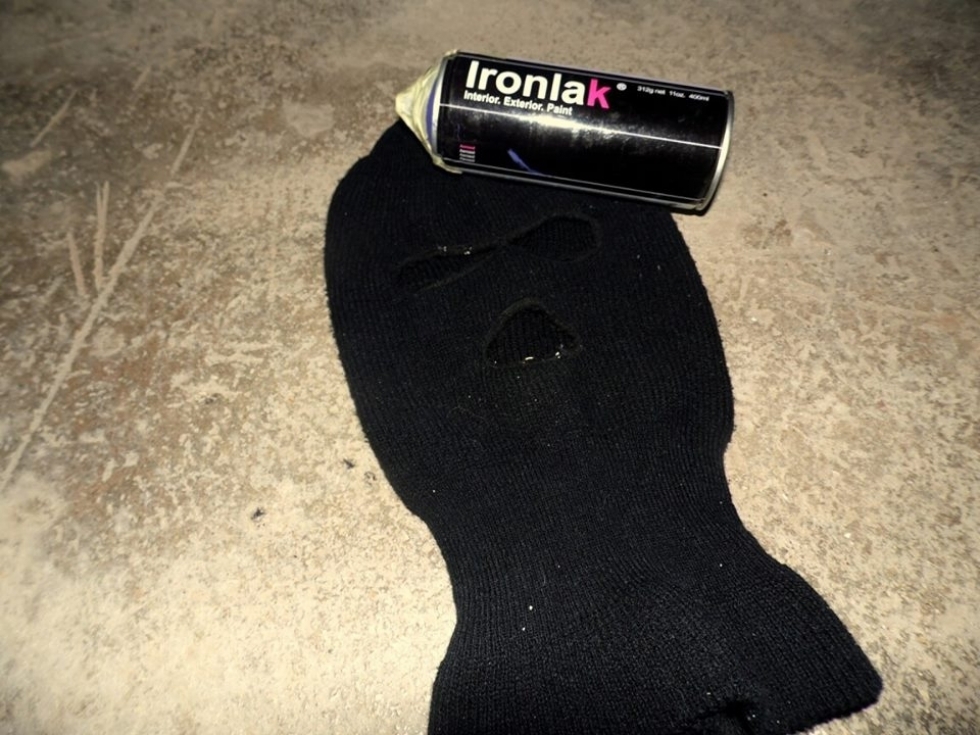 Símaszkos képét, valamint a falfirkájáról készített felvételt feltöltötte az egyik közösségi portálra egy litéri fiatalember.