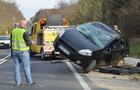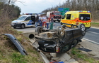 Tetejére fordult az árokba lökött Fiat a 88-as főúton