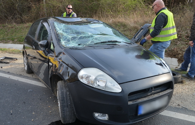 A Fiat az út menti árokba csapódott és a tetejére fordulva állt meg, az autóban utazók használták a biztonsági övüket, ezért csak könnyebb sérüléseket szenvedetek.