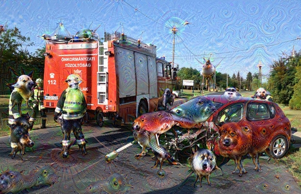Szerencsés kimenetelű balesetek képeivel és szombathelyi légifelvételekkel teszteltük a Google DeepDream algoritmusát. Az eredmény meglehetősen pszichedelikus. A Google gépeinek áramköre kutyákkal van tele.