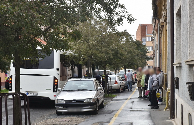 A baleseti helyszínelő érkezésekor kanyarodott be a bedugult Nádasdy utcába az Ikervár felé tartó autóbusz. A busz eleje éppen csak elérte a jobb padkán szabályosan parkoló gépkocsi tükrét, de az összetört.
