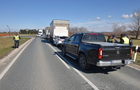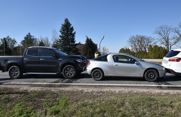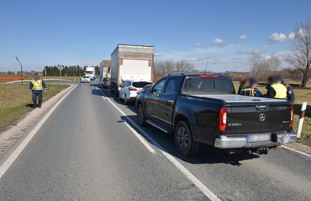 A MAN mögött érkező Ford és a mögötte haladó Opel vezetője a hirtelen lassuló teherautó miatt fékezett, de a sort záró német rendszámú Mercedes pickup egybe tolta a járműveket.