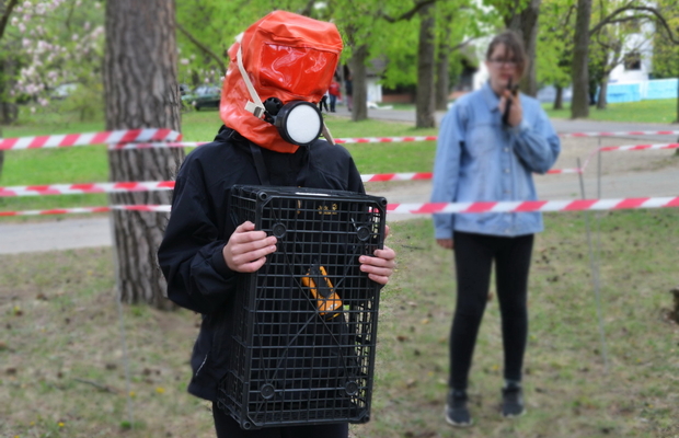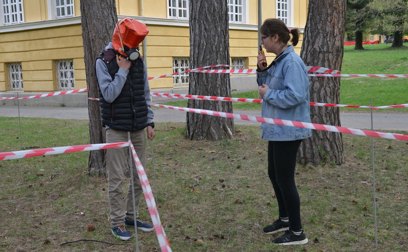 Tovább haladva a feladatok sorában a tanulók egyik kedvenc versenyszáma, a szennyezett terepszakaszról, speciális védőruhában való mentés kapott főszerepet, amelyet a csaknem ugyanennyire népszerű rádió navigációval történő, tájékozódási készséget mérő állomás követett.