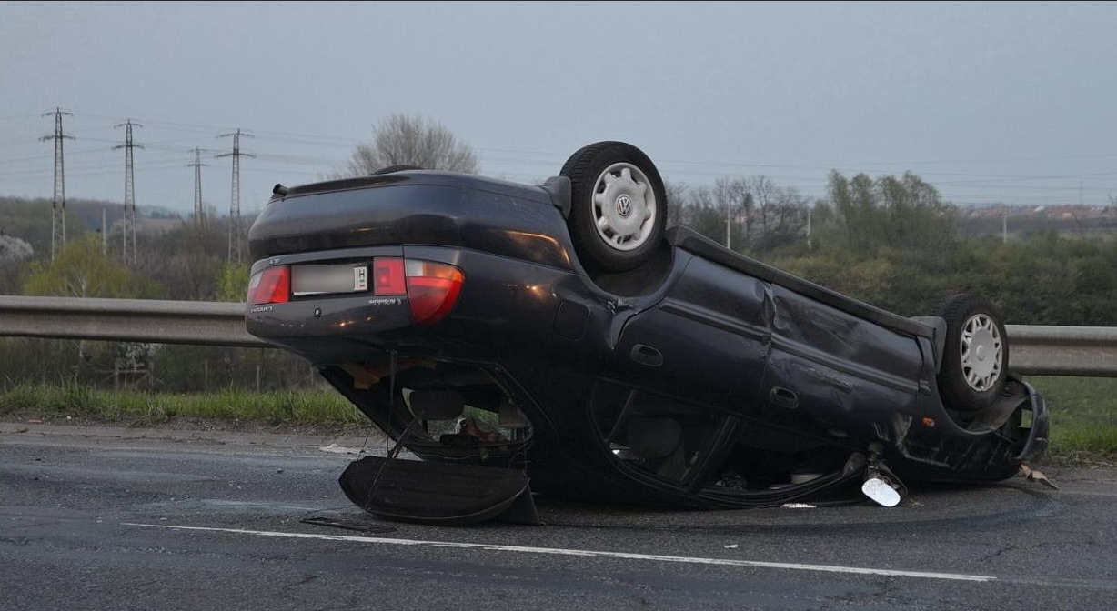 A Mitsubishi hölgy vezetője ekkor már semmit nem tehetett, a lökéstől a kocsi irányíthatatlanná vált, megpördült, majd a tetejére fordulva átsodródott a szemközti sávba. A balesetben senki nem sérült meg.