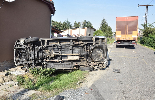 A Szatmár utcában közlekedő Toyota kisbusz vezetője vészfékezett, amikor meglátta a neki jobbról, a Jávor utcából előbukkanó kamion vezetőfülkéjét az egyenrangú kereszteződésben. A kisbusz a kamion oldalának ütközött és felborult.