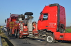 Videó: Szembe hajtott a kamionnal, meghalt a Fiat sofőrje a 87-es főúton