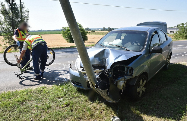 Kerékpárossal ütközött, majd villanyoszlopnak hajtott egy Chevrolet Csepregnél