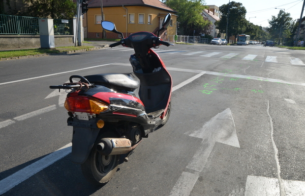 Megijedt egy Stop vonalon túl guruló autós manőverétől és elesett segédmotor-kerékpárjával egy férfi Szombathelyen.