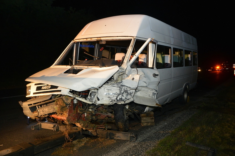Jánosháza felől Körmend irányába tartott egy Iveco kisbusz szerdán éjszaka a 8-as számú főúton. Szemenye és Kám között a háromsávos szakaszon a busz eddig tisztázatlan okból - feltehetőleg előzési szándékkal - áttért a szembejövő sávba, ahol érintőlegesen ütközött egy bolgár trélert előző Audival.