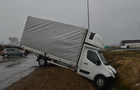 A kisteherautó a 86-os főúton haladt Körmend irányába, amikor megcsúszott a körforgalomban és két kijárat között kisodródva egy mély vízelvezető árokba borult.