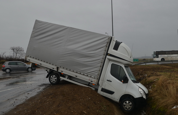 Egy cseh rendszámú Renault kisteherautó hajtott az árokba pénteken reggel a 86-os főút Szombathelyt elkerülő szakaszán a vépi körforgalomnál.