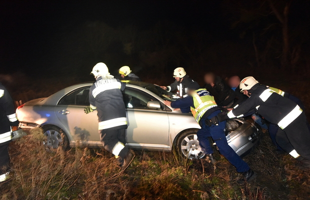 Az úttesttől messze állt meg az a Toyota személyautó, ami egy megcsúszás után letért az útról, majd egy bokros részen földkupac állította meg. Videón mutatjuk a műszaki mentést.
