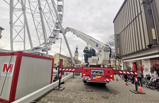 Magasból mentési gyakorlat zajlik az óriáskeréknél Szombathelyen