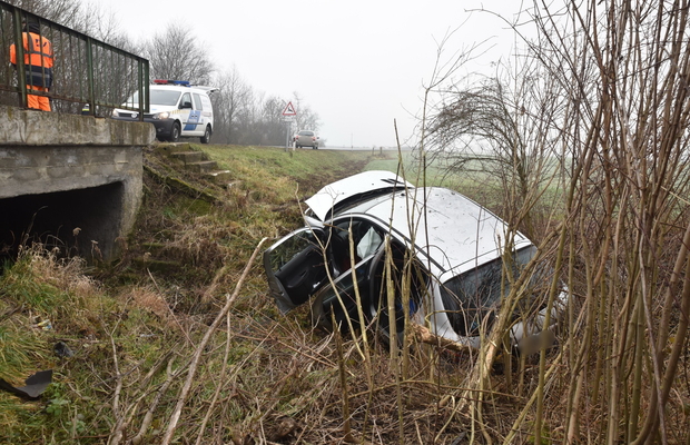 A Szombathely felé tartó Peugeot egy balra ívelő kanyar után a menetirány szerinti jobb oldalon letért az útról, hosszan haladt a töltés alján, majd egy vízmederbe csapódott.