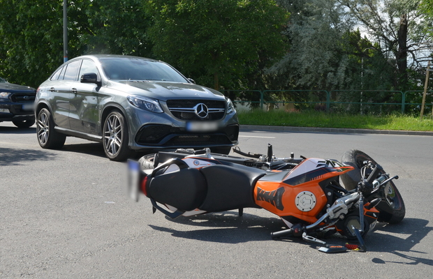 Mindkét jármű a szombathelyi Bartók Béla körúton haladt a Rohonci út felé, amikor a Mercedes jobbra, a Haladás pályához akart befordulni és összeütköztek. Az autó sofőrje kérdésünkre elmondta, hogy a motoros jobbról előzte, amikor ő jobbra akart fordulni és a KTM az autó jobb oldalának ütközött.