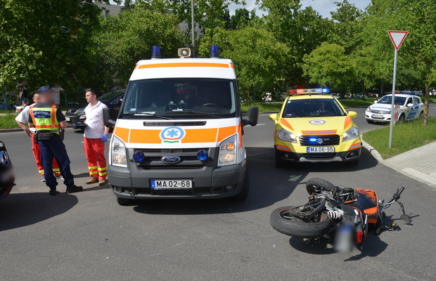 A motoros fiatal megsérült a balesetben, a mentők kórházba szállították, úgy tudjuk, hogy a karja sérült meg.