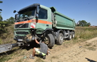 A Volvo nem borult fel, amikor lehajtott a magas töltésről. A sérült futóművű teherszállítót kamionmentővel vontatták be Szombathelyre.