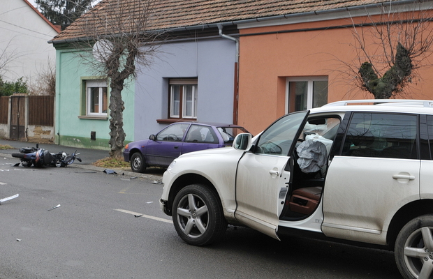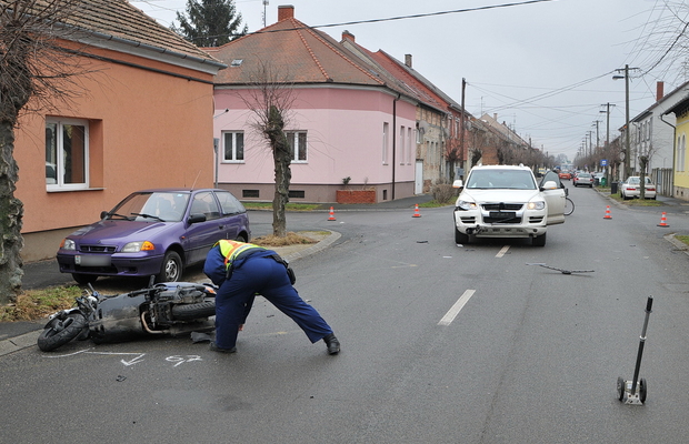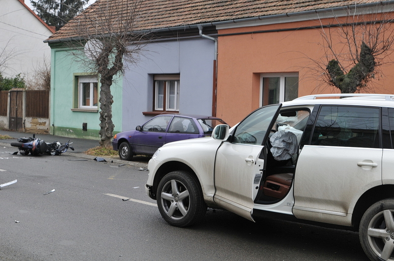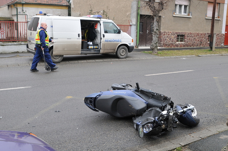 A baleset csütörtökön délben történt. A motoros a gázolás után zavartan válaszolgatott a kérdésekre, majd leült az út szélén, hogy elszívjon egy cigarettát, mire kiérnek a mentők. A Volkswagent vezető férfi nem sérült meg, a VW első légzsákjai működésbe léptek az ütközéskor.