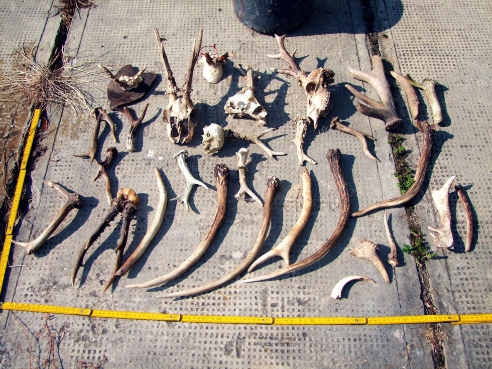Több mint száz kiló húst, trófeákat és fegyvereket találtak a gyanúsítottak lakásán.