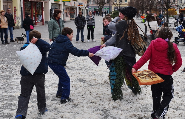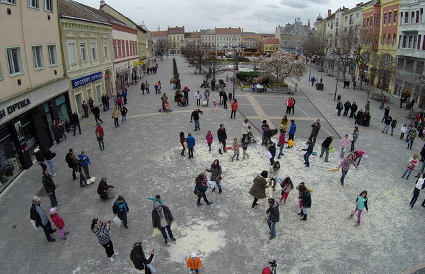 Ilyen egy párnacsata a levegőből Szombathely Fő terén