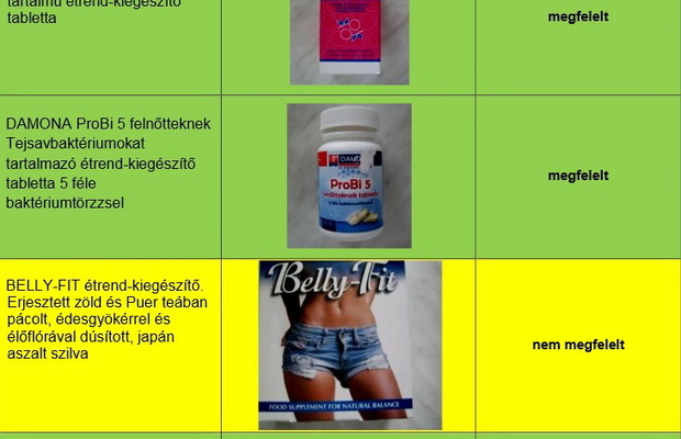 A vizsgált 54-féle termék közül 3-féle készítmény (1 vitaminokat tartalmazó készítmény és 2-féle mikroorganizmusokat tartalmazó étrend-kiegészítő) nem felelt meg a követelményeknek: