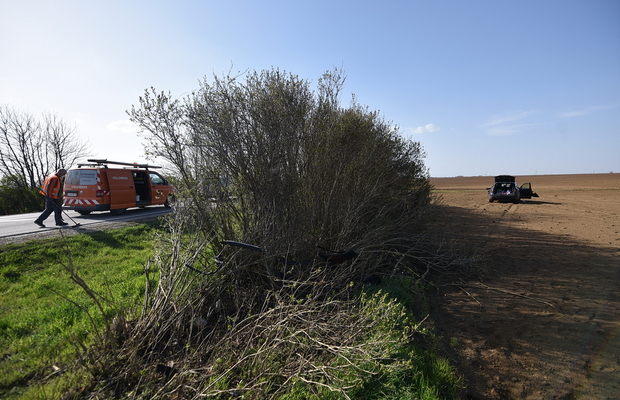 A személyautó ezután a menetirány szerinti jobb oldalon letért az útról, áthajtott egy bokros részen, majd szántóföldön állt meg. Az autó nem borult fel.