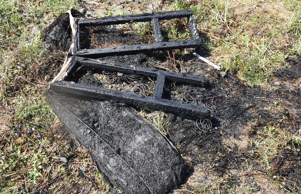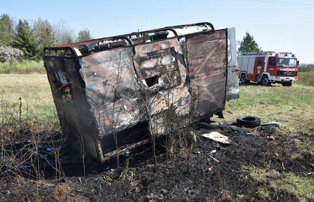 Az egykor lakókocsinak használt pótkocsi teljesen kiégett.