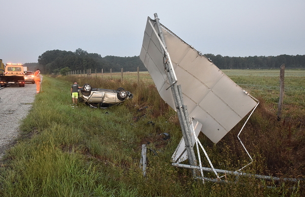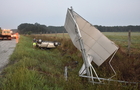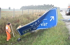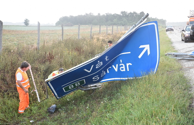 Táblát döntött és felborult egy Renault az M86-os autóúton, Szeleste közelében