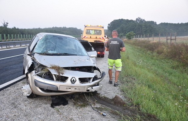 A baleset szerdán hajnalban történt. A sofőr figyelme feltehetőleg kihagyott és a padka rázására hirtelen mozdulattal reagált, gyorsan próbált visszatérni az aszfaltra. A Renault meredeken ért vissza a belső sávba, majd onnan a padkáról leugratva kidöntött két jelzőtáblát, végül a tetejére borulva állt meg. Az autóút ezen szakaszán nincs szalagkorlát az árok mellett.