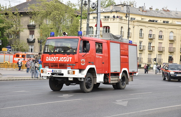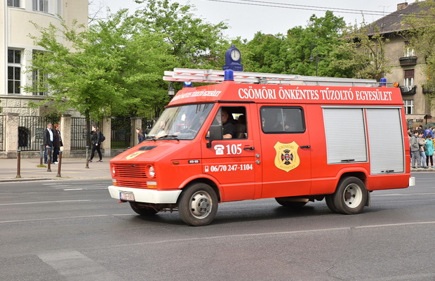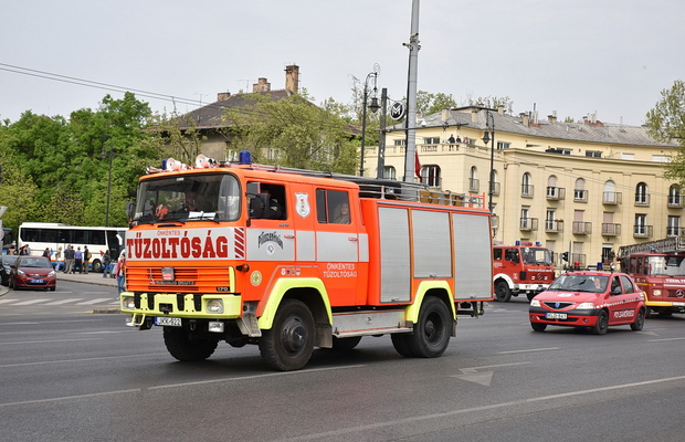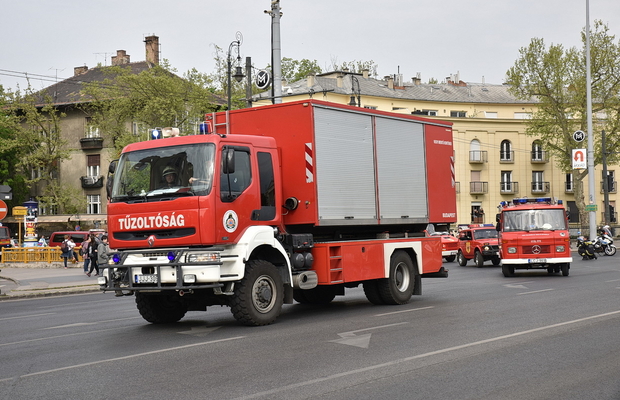 Tűzoltóautók felvonulása Budapesten a Rendőr- és Tűzoltónapon - 2016.