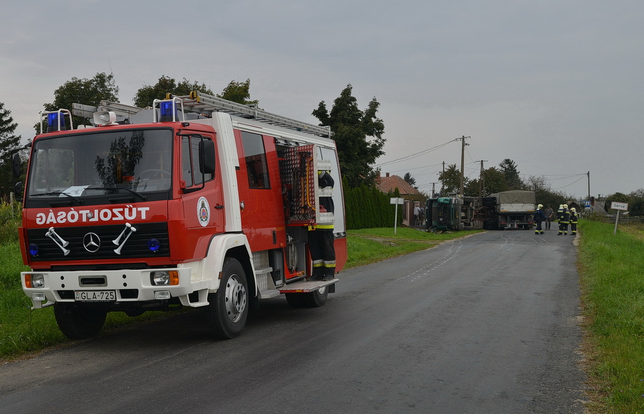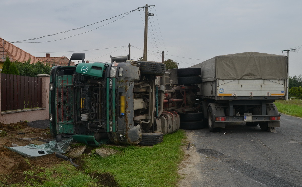 Megcsúszott az úton és felborult egy repcét szállító teherjármű Gérce határában. A sofőr megsérült, kórházba szállították.
