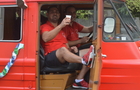 Ma már nem hétköznapi tűzoltójárművek is csatlakoztak a csepregi szüreti felvonuláshoz. A korhű ruhás tűzoltók egy Zuk és egy Ikarus járművel gurultak végig a városon szombaton délután.