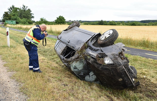 A Suzuki a nedves úton a menetirány szerinti padkára hajtott, majd az árokban felborult. Az autót vezető fiatalember megsérült, kórházba szállították.