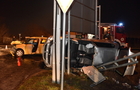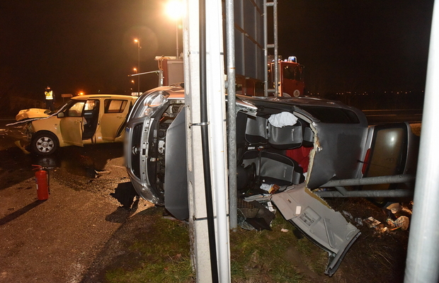 Táblának csapódott és felborult a szabálytalan autós kocsija Szombathelyen